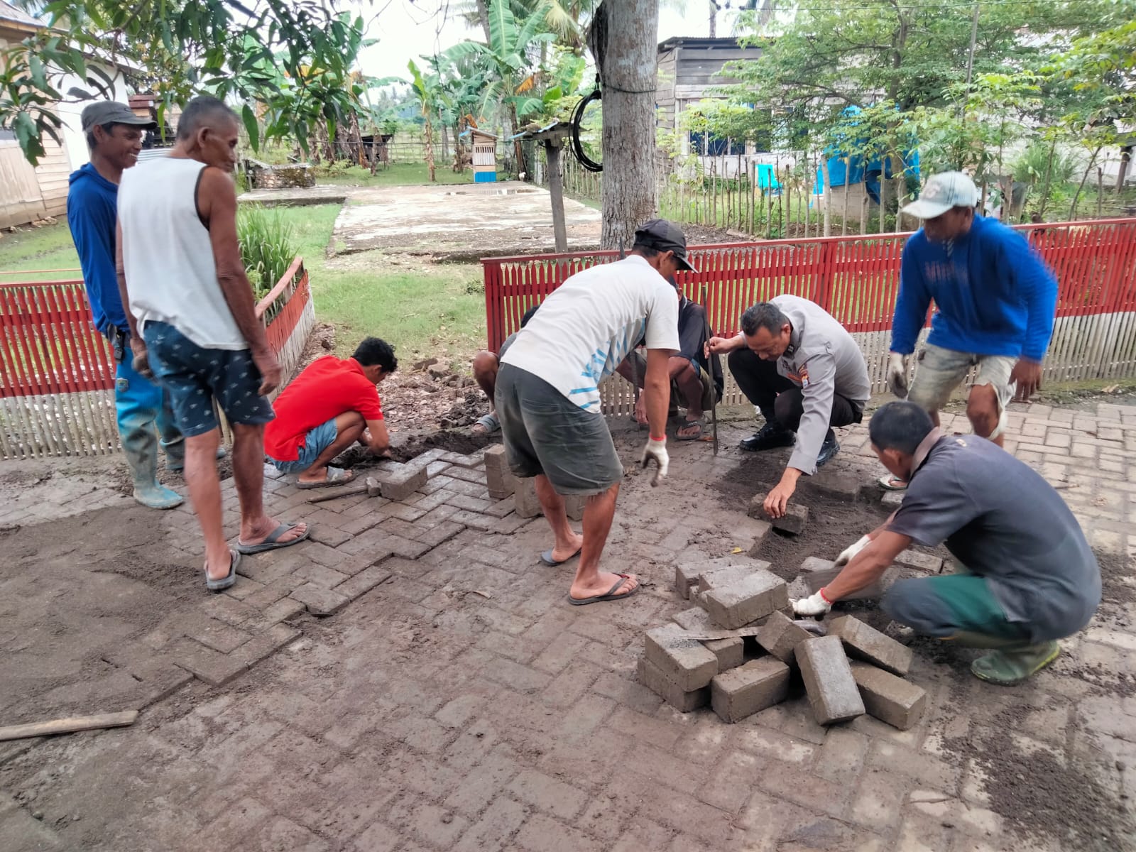 Dalam kegiatan tersebut, Aiptu Muh. Anas terlihat turut serta memasang dan memperbaiki paving blok yang rusak di akses jalan utama menuju permukiman warga. Aksi ini mendapat apresiasi dan sambutan hangat dari masyarakat setempat.