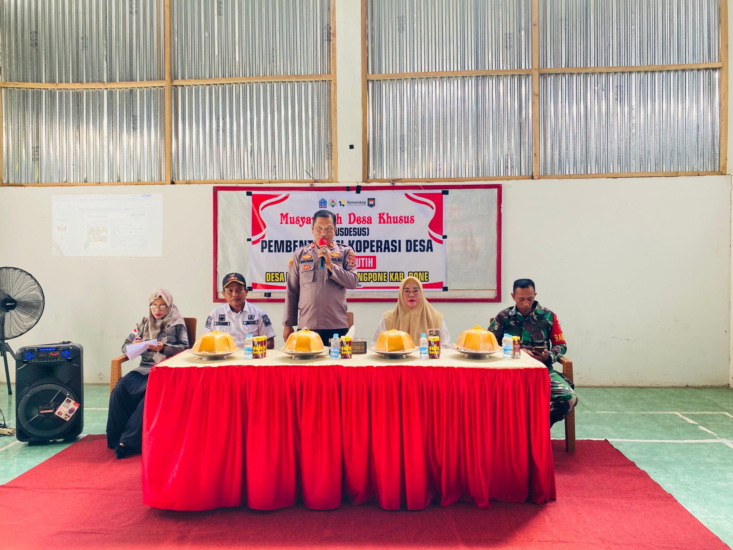 Perlunya mengapresiasi komitmen Pemerintah dalam memberdayakan masyarakat melalui pembentukan koperasi. Pentingnya tata kelola koperasi yang transparan dan profesional, serta mendorong sinergi lintas sektor dalam proses pembinaan dan pengembangan koperasi ke depan. Wakapolsek Awangpone pun turut menegaskan pentingnya stabilitas dan keamanan sebagai prasyarat untuk tumbuhnya kegiatan ekonomi di desa.