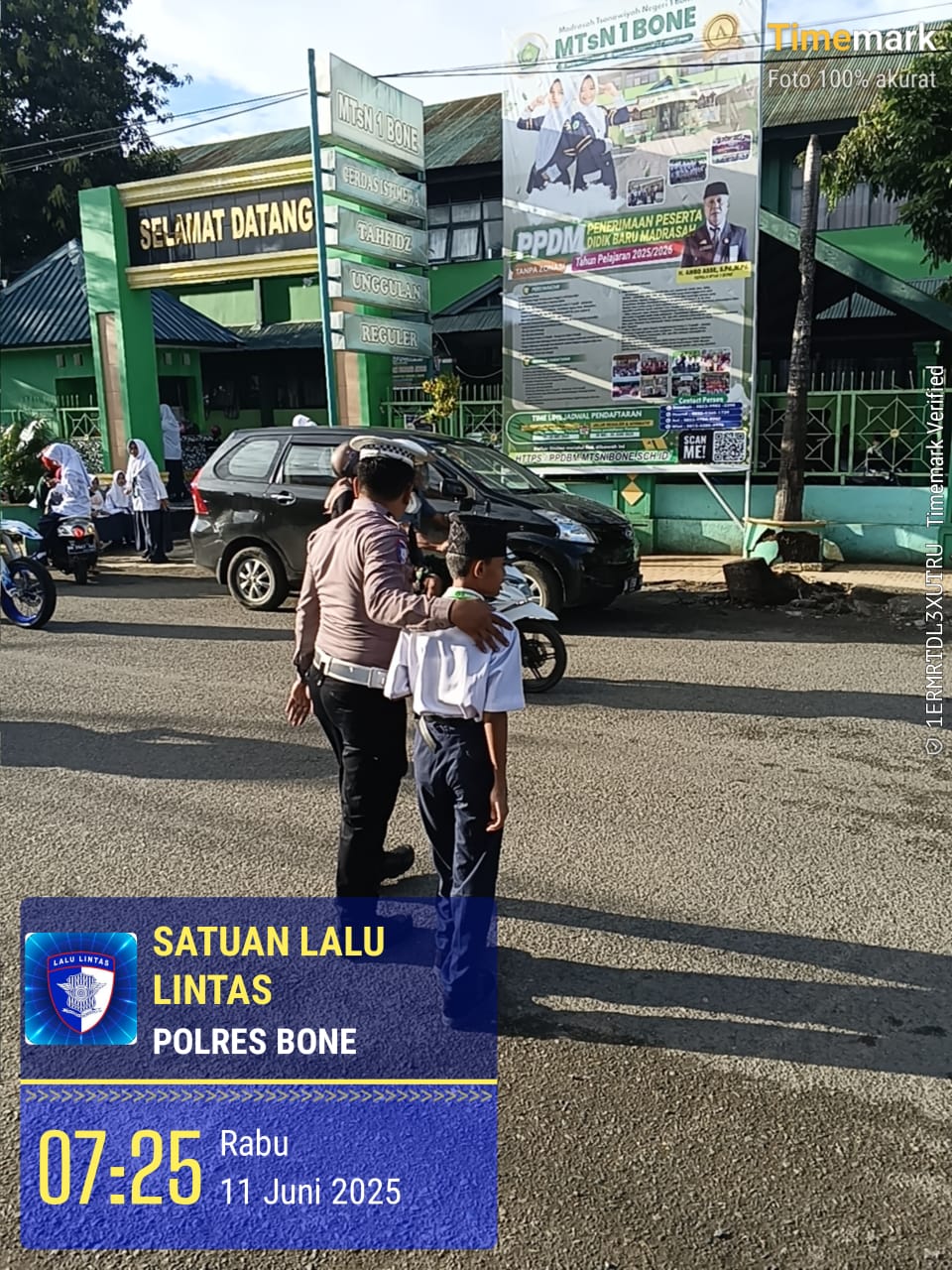Kapolres Bone AKBP Sugeng Setio Budhi, S.IK., M.Tr.Opsla. melalui Kasat Lantas AKP H Musmulyadi S.PDi mengatakan Anak sekolah yang akan menyeberang dibantu demi keamanan dan keselamatan serta mencegah terjadinya kecelakaan lalu lintas.