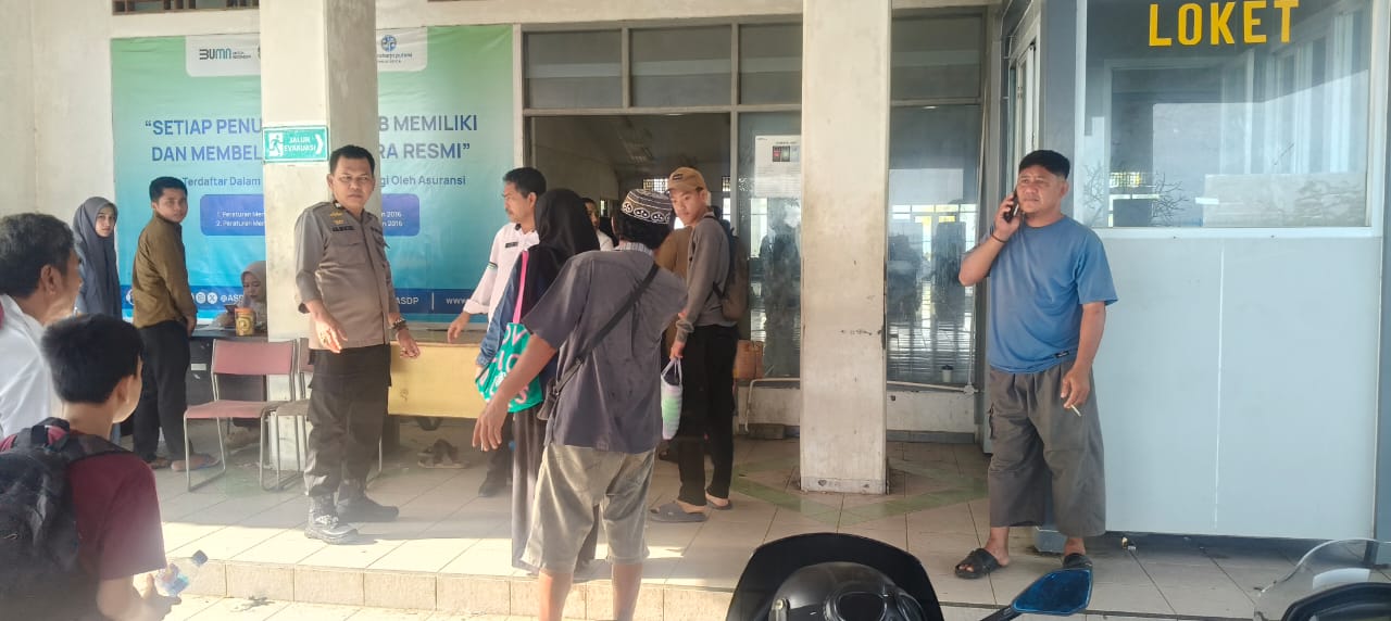 BONE – Bajoe, Beri rasa aman dan pelayanan kepada penumpang / pengguna jasa di Pelabuhan Bajoe. Personil lakukan pelayanan dan pengamanan di Loket Ticket gedung ASDP Pelabuhan Bajoe. Kamis ( 03/07/2025).