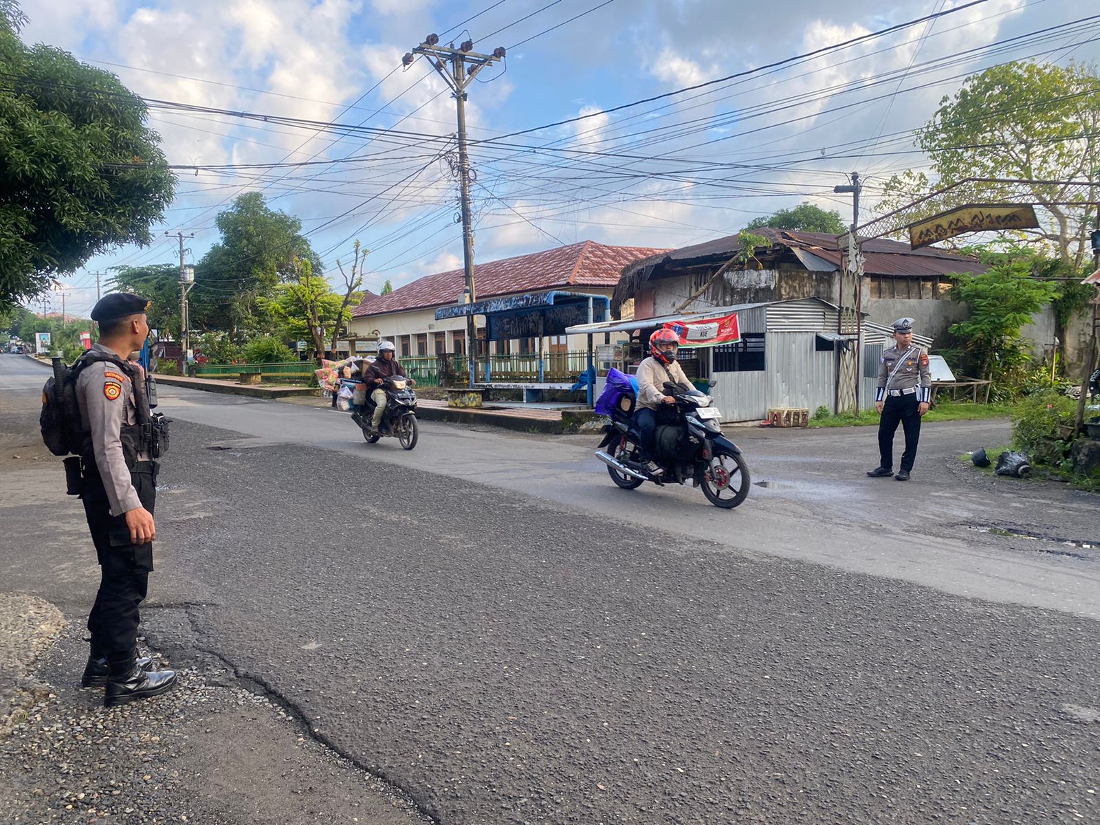 BONE – Personel Sat Samapta Polres Bone Polda Sulawesi Selatan laksanakan pengaturan pagi dan himbauan lalu lintas di Kota Watampone, Senin (07/07/2025).