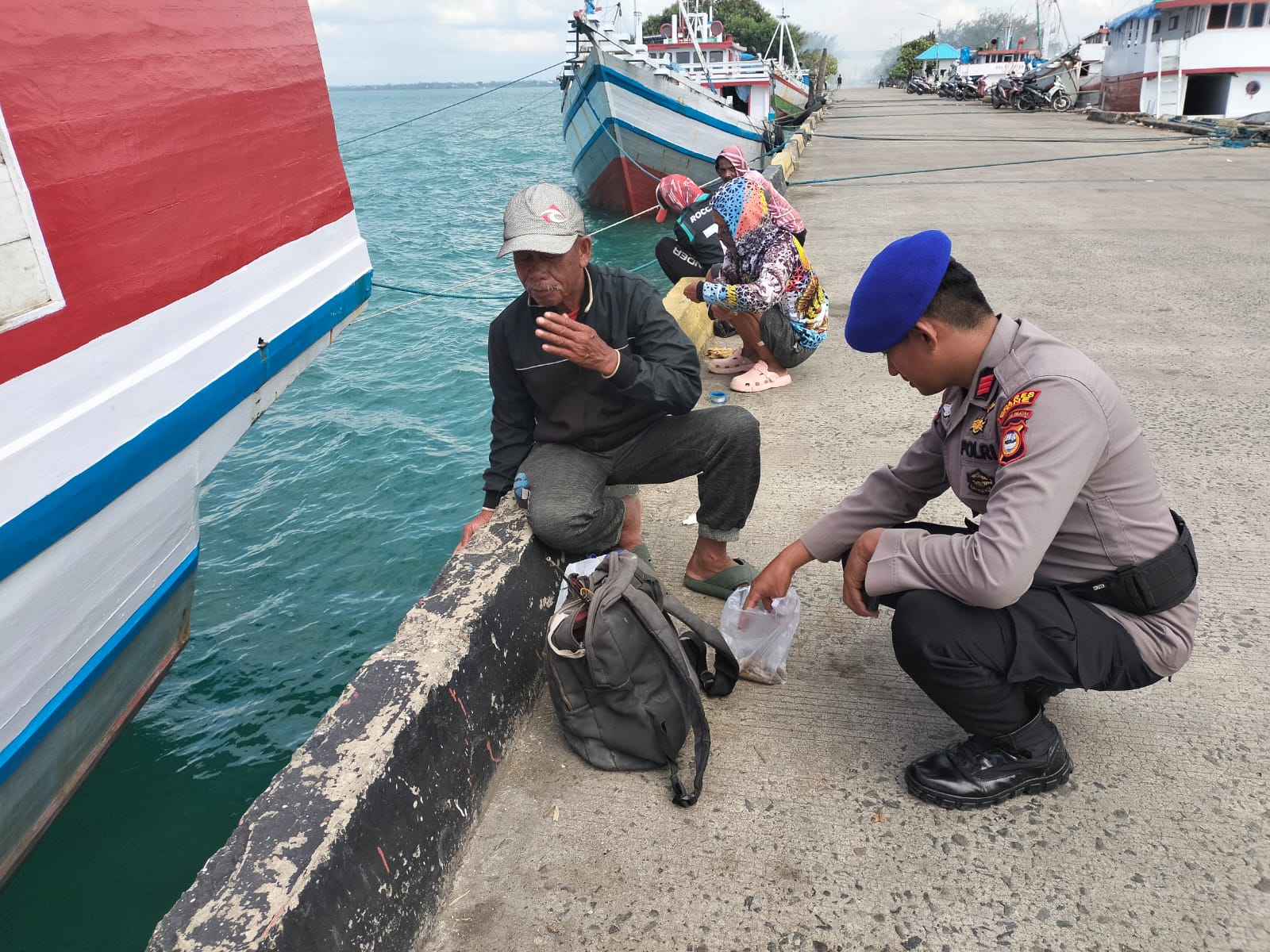 Dalam kegiatannya,, Bharaka Kaharuddin menyapa sambil memberikan himbauan kamtibmas kepada pemancing yang sedang mengisi waktu luang diareal pelabuhan Rakyat Bajoe untuk selalu waspada dengan cuaca saat memancing dipinggir dermaga.