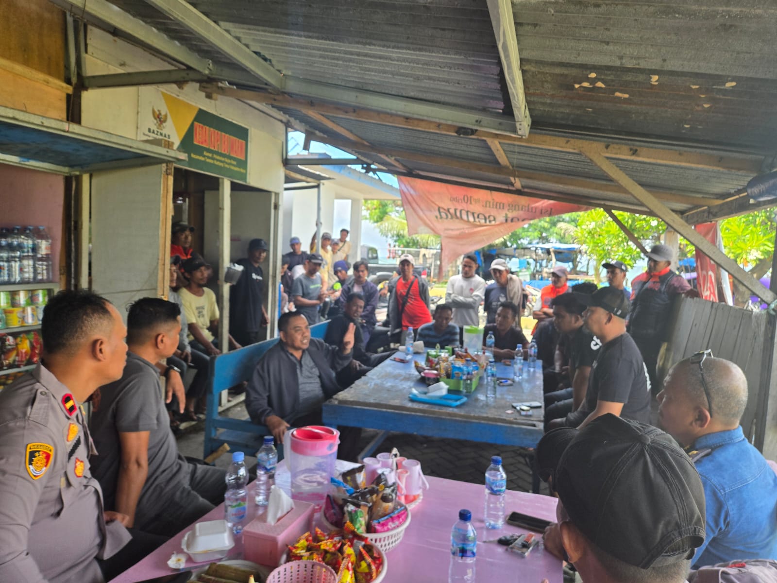 BONE – Bajoe, Duduk bersama komunitas buruh Pelra, bersilaturahmi dengan ngopi bareng sekaligus lakukan pembinaan dan pengawasan aktifitas di Pelabuhan Rakyat. Senin ( 14/07/2025).