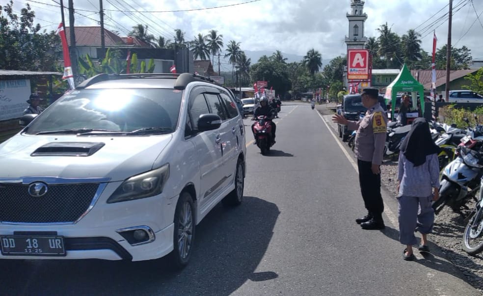 Aiptu Hamka tampak sigap mengatur arus lalu lintas di sekitar area pasar dan membantu warga yang hendak menyeberang jalan. Ia juga memberikan imbauan kepada pengendara agar tetap tertib dan mematuhi peraturan lalu lintas demi keselamatan bersama.