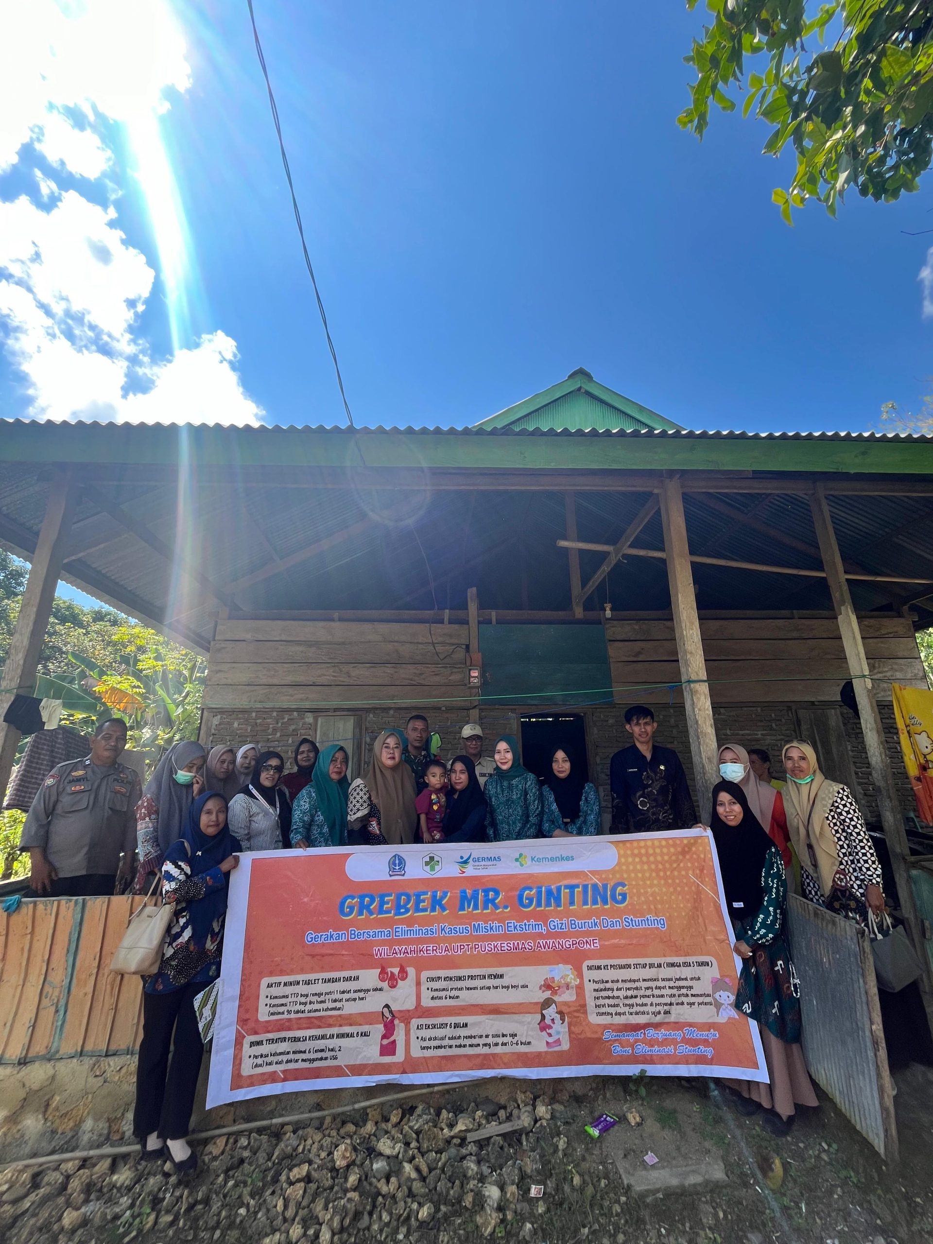 Kegiatan “Grebek Mr. Ginting” merupakan program terpadu yang menargetkan penghapusan kasus kemiskinan ekstrem, perbaikan gizi, serta pencegahan stunting pada balita dan anak-anak di wilayah pedesaan. Program ini menjadi bagian dari komitmen pemerintah pusat dan daerah untuk menurunkan angka stunting secara signifikan sekaligus mengentaskan kemiskinan yang masih menjadi tantangan di beberapa wilayah, termasuk di Kecamatan Awangpone Kabupaten Bone.