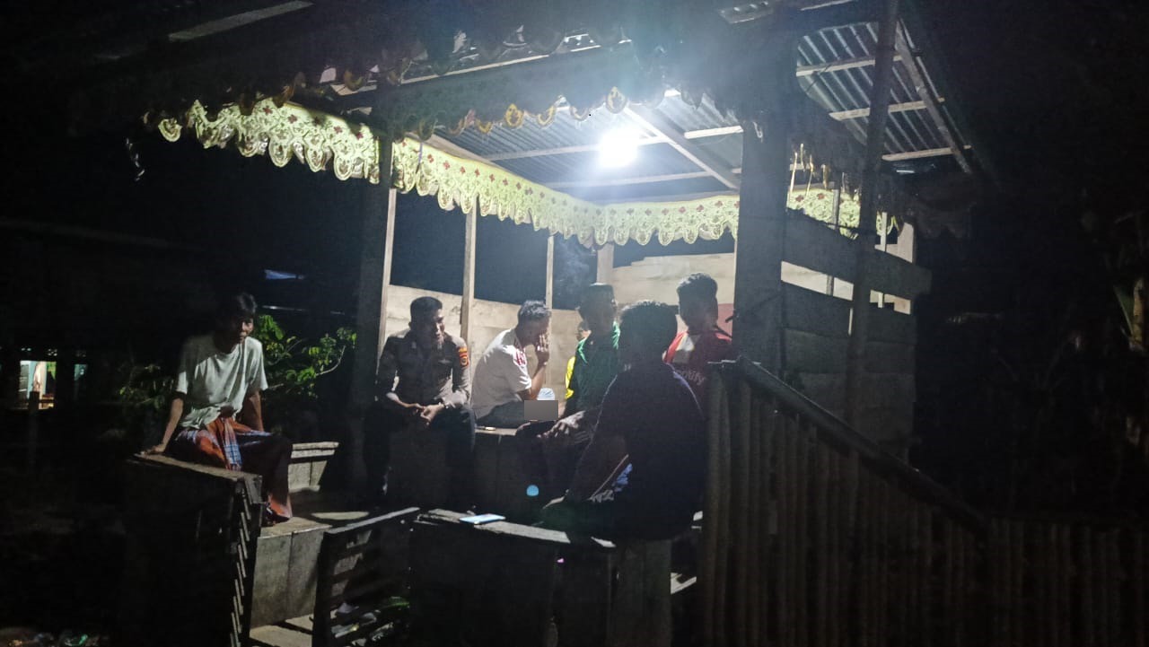 BONE – Tellu Siattinge, Bhabinkamtibmas Polsek Tellu Siattinge Polres Bone Bripka Idrus rutin melaksanakan sambang, dalam upayanya untuk dapat bertemu dan berbaur dengan masyarakat. Kali ini ia melaksanakan kegiatan patroli dan menyambangi salah satu pos kamling yang masih beraktivitas pada malam hari.