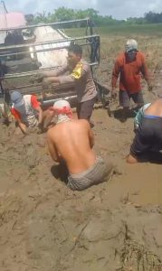 BONE – Manurunge, Wujud nyata pengabdian tanpa batas kembali ditunjukkan oleh Bhabinkamtibmas Polsek Tanete Riattang Polres Bone, Bripka Andi Rusman. Kali ini, dirinya turut serta mengevakuasi mobil mesin padi yang terjebak di lumpur saat proses panen di sawah warga, di Lingkungan Pao-Pao, Kelurahan Panyula, Kecamatan Tanete Riattang Timur, Kabupaten Bone”Minggu (28/07/2025)