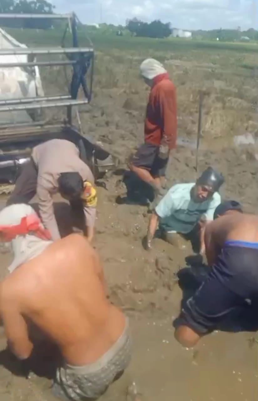 Kejadian bermula saat salah satu warga sedang menggunakan mobil mesin panen padi di area persawahan. Namun, akibat tanah yang labil dan berlumpur, kendaraan tersebut amblas dan tak bisa bergerak. Melihat situasi tersebut, Bripka Andi Rusman yang tengah melakukan sambang di wilayah binaannya langsung turun tangan.