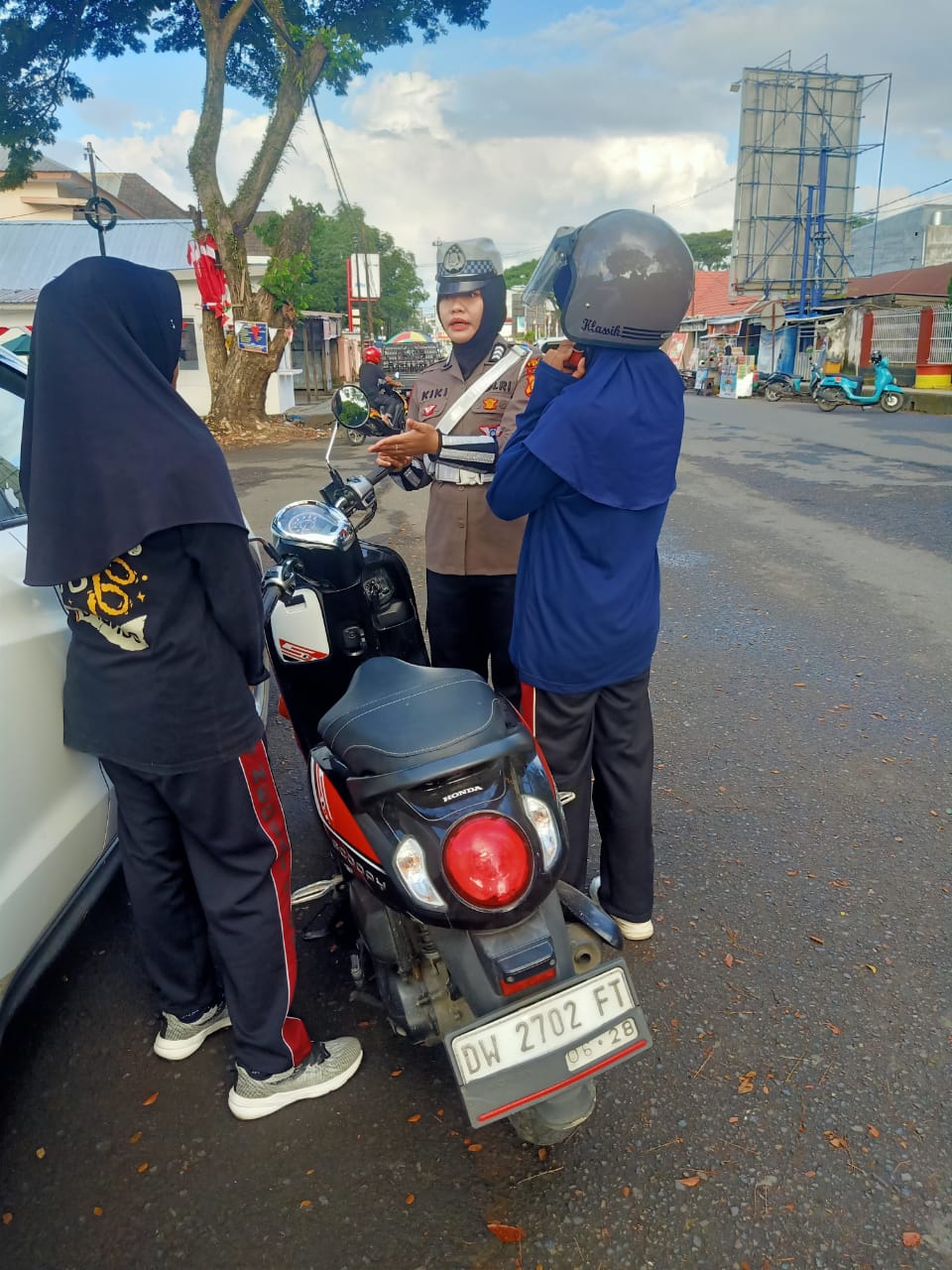 Dalam kegiatan tersebut, menekankan pentingnya penggunaan helm sebagai perlindungan dasar bagi pengendara motor.