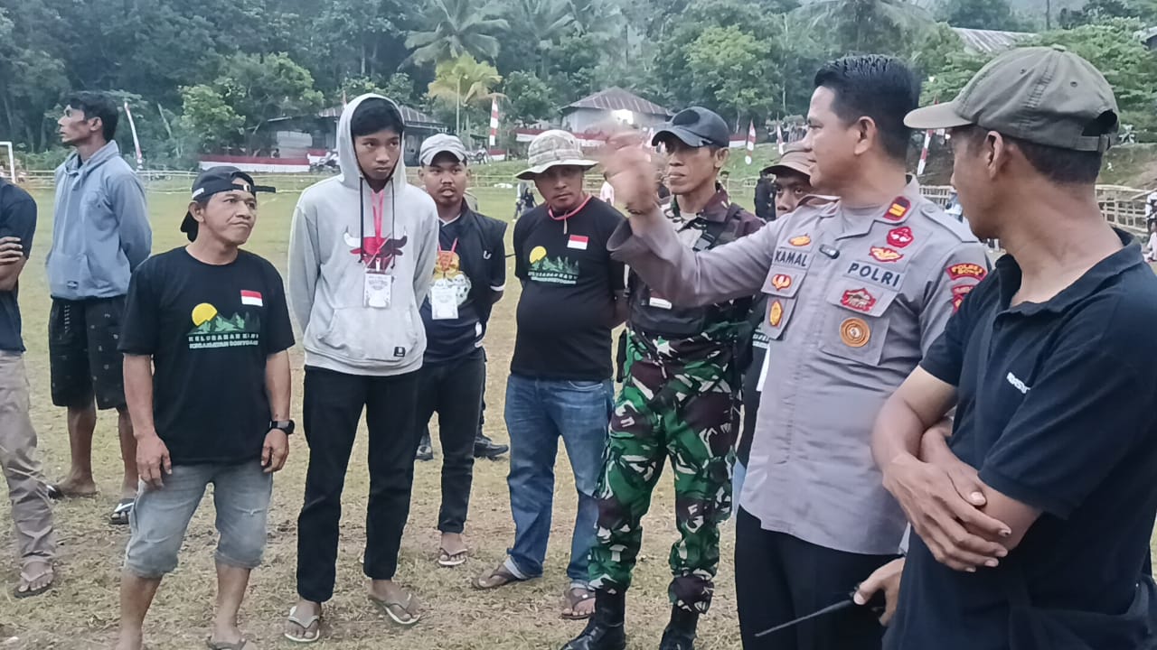 BONE – Bontocani, Kapolsek Bontocani Polres Bone, Iptu Kamaluddin, S.H, memberikan pengarahan kepada panitia pertandingan sepak bola dalam rangka memperingati Hari Kemerdekaan Republik Indonesia ke-80 di Kecamatan Bontocani. Kegiatan ini bertujuan untuk memastikan keamanan dan ketertiban selama pertandingan berlangsung.
