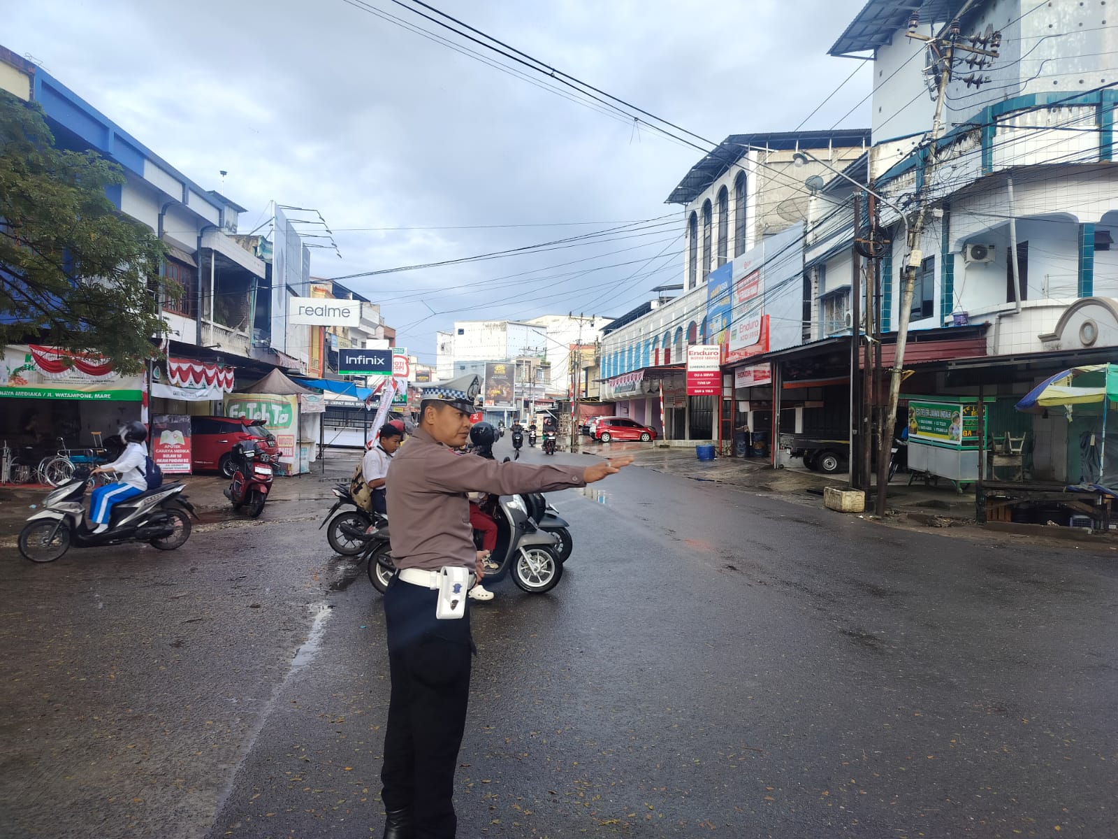 Personel kembali melaksanakan kegiatan pengaturan lalu lintas atau gatur pagi di sejumlah titik strategis di Kota Watampone, Kabupaten Bone.