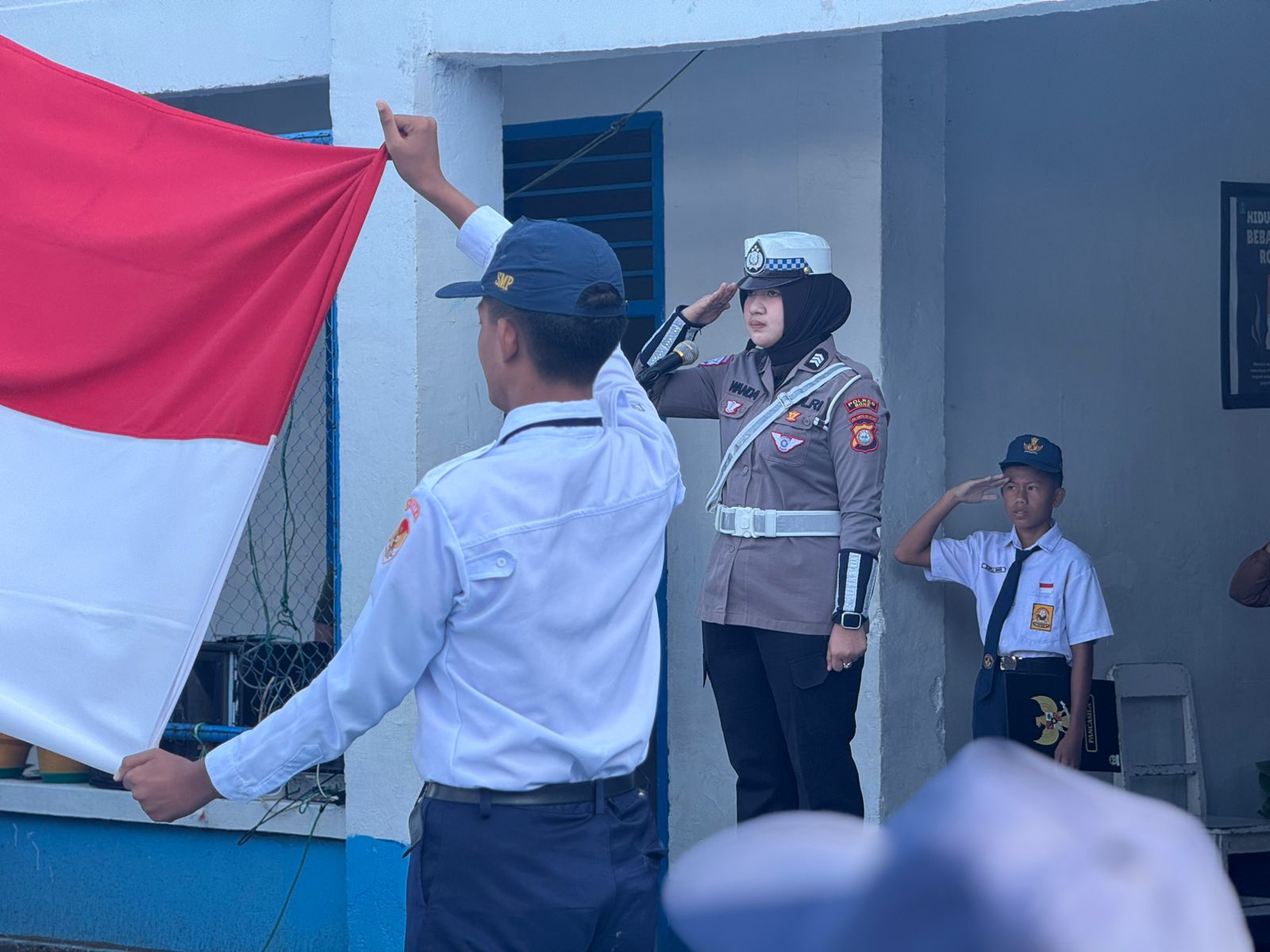 BONE – Berbagai cara dilakukan Satlantas Polres Bone dalam melakukan sosialisasi Keamanan, Keselamatan, Ketertiban dan Kelancaran Lalulintas (Kamseltibcarlantas), salah satunya dengan menghadirkan personel untuk menjadi Inspektur Upacara (Irup) Bendera di sekolah-sekolah, Senin (01/09/2025).
