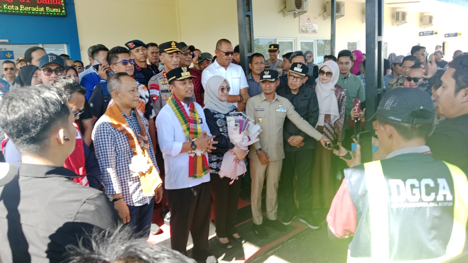 Setibanya di Bandara Arung Palakka Bone, rombongan penumpang disambut langsung oleh jajaran pejabat daerah, pimpinan instansi, dan unsur Forkopimda. Bupati Bone H. Andi Asman Sulaiman, S.Sos., M.M turut hadir mendampingi bersama Kapolres Bone AKBP Sugeng Setyo Budhi, S.I.K., M.Tr. Opsla, Danyon C Pelopor Brimob Bone Kompol Rudy Mandaka, S.H, serta perwakilan Dandim 1407 Bone Pasi Intel Kapten Darlis. Selain itu hadir pula Dandempom Bone Letkol CPM Paryoto, S.H., M.H., Wakil Ketua DPRD Kabupaten Bone Khairul Amran, ST, serta Wakil Bupati Bone Dr. H. Andi Akmal Pasluddin, S.P., M.M. Kehadiran berbagai unsur pimpinan daerah menunjukkan sinergi dalam mendukung pemanfaatan fasilitas bandara sebagai salah satu sarana strategis pembangunan daerah.