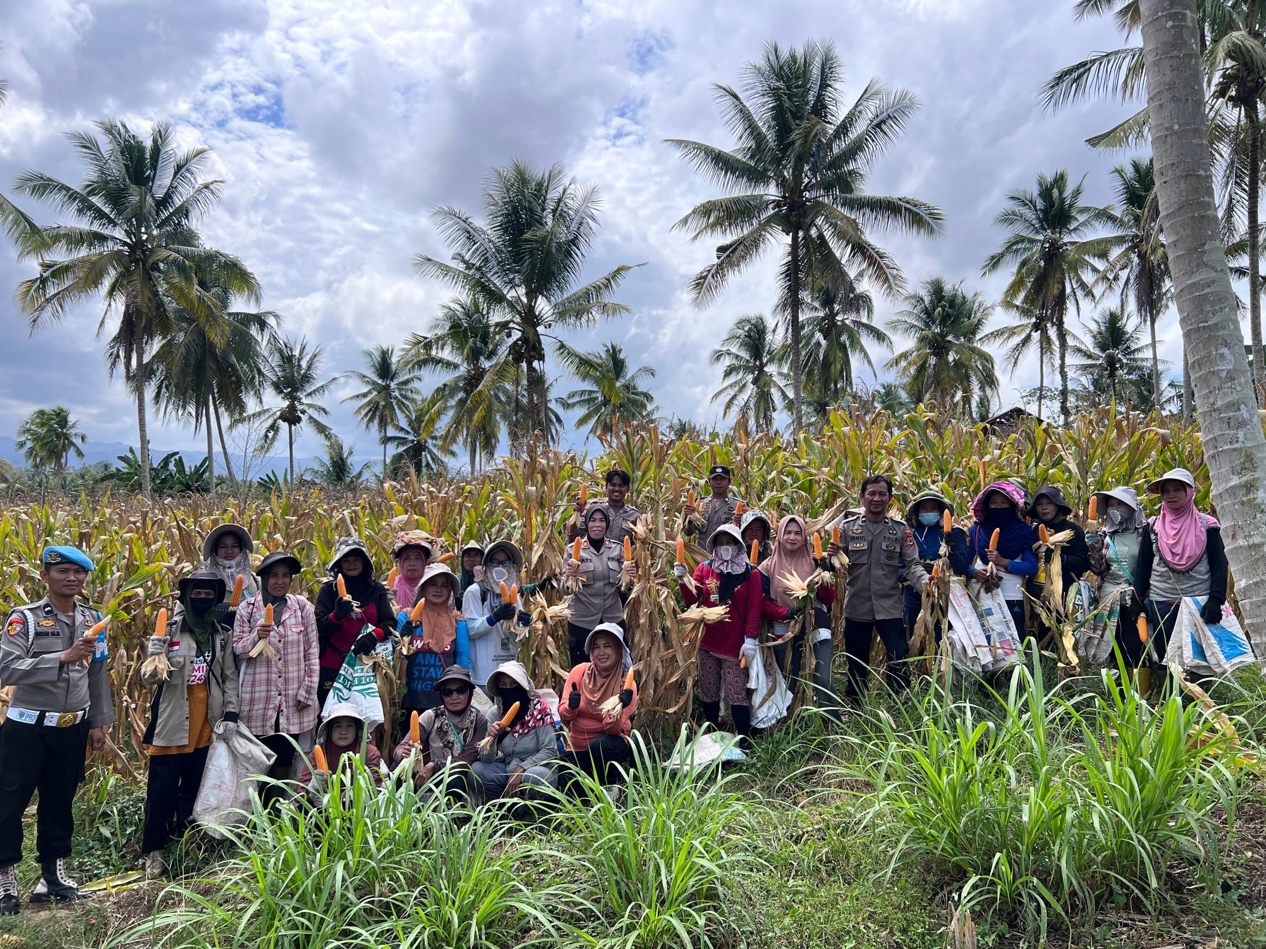 Kegiatan ini turut dihadiri oleh unsur Forkopimcam, penyuluh pertanian, serta masyarakat setempat. Suasana panen berlangsung penuh kebersamaan dan semangat gotong royong, sebagai wujud sinergi antara pemerintah, aparat keamanan, dan warga dalam mendukung ketahanan pangan di wilayah Kecamatan Lamuru.