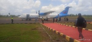 BONE – Sekitar pukul 07.15 Wita, bertempat di Bandara Arung Palakka Bone, Desa Mappalo Ulaweng, Kecamatan Awangpone, Kabupaten Bone, berlangsung kegiatan pemantauan keberangkatan penumpang pesawat ATR Fly Jaya. Pesawat ini dijadwalkan terbang menuju Bandara Sultan Hasanuddin Makassar dengan Pilot Lel. Gala Airlangga dan Co-Pilot M. Setyaki. Awangpone, 29 September 2025,