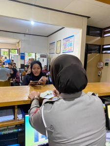 Tak sekadar melayani administrasi, personel Satlantas juga aktif memeriksa kelengkapan berkas sesuai dengan SOP, serta memberikan arahan agar para wajib pajak tidak kesulitan dalam mengisi formulir.
