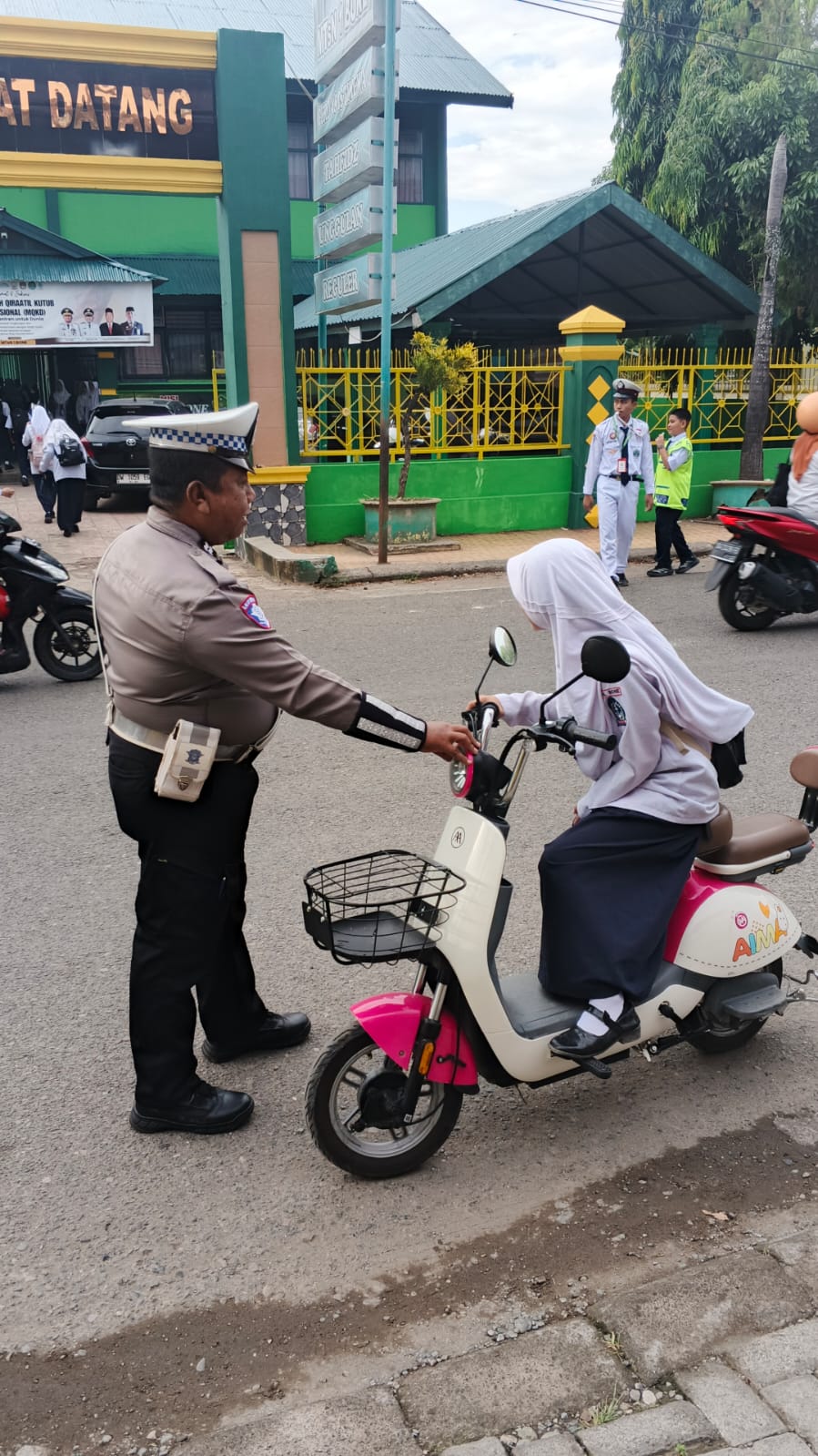 Pengguna sepeda listrik diberikan teguran lantaran tanpa menggunakan kelengkapan keselamatan seperti helm, langkah itu dilakukan demi terwujudnya kamseltibcarlantas.