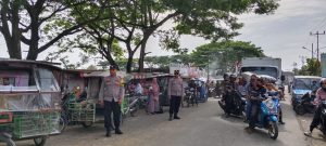 Dalam pelaksanaannya, petugas juga memberikan imbauan kepada para pengendara agar selalu mematuhi peraturan lalu lintas, seperti menggunakan helm, tidak parkir sembarangan, dan menjaga ketertiban selama berada di kawasan pasar. Beberapa petugas juga membantu menyeberangkan warga, khususnya lansia dan anak-anak.
