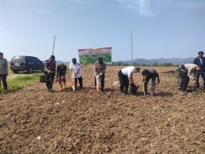 BONE – Ponre, Dalam upaya mendukung program pemerintah menuju swasembada pangan nasional, Kapolsek Ponre bersama unsur Forkopimcam melaksanakan kegiatan tanam jagung serentak kuartal IV tahun 2025 yang berlangsung di lahan pertanian Desa Bolli kecamatan Ponre, Rabu (08/10/2025)