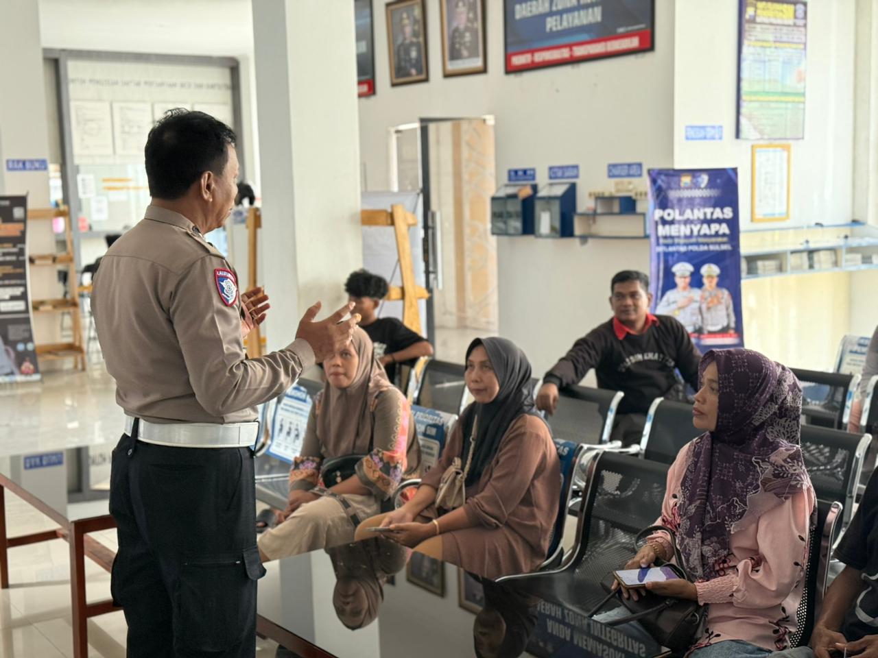 Kali ini, pemohon SIM di Gedung Pelayanan Terpadu Polres Bone yang menjadi sasaran edukasi Kamseltibcar Lantas melalui program Polantas Menyapa.