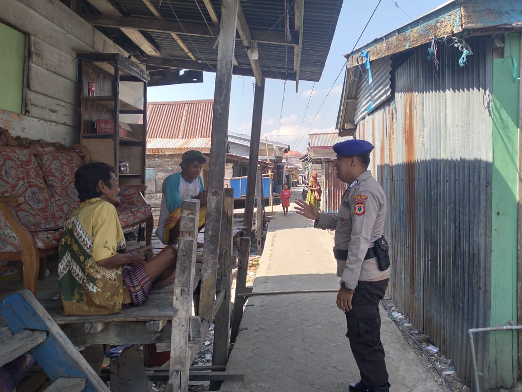 BONE – Bajoe. Personil Satpolairud Polres Bone Aiptu Supriadi bersama dengan Bripka Muhlis melaksanakan sambang dengan cara Door To Door System (DDS) terhadap masyarakat nelayan dan warga masyarakat pesisir, Ahad (19/10/2025) siang.