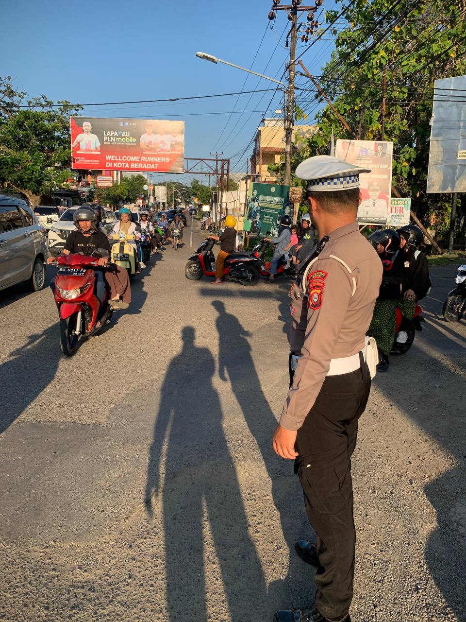 BONE – Guna menciptakan arus lalu lintas yang aman dan lancar, personel Satlantas Polres Bone melaksanakan pengaturan lalu lintas sore hari di sejumlah titik rawan, Sabtu (25/10/2025)