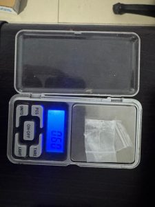 Dari hasil penggeledahan, petugas menemukan dua sachet plastik klip kecil berisi kristal bening diduga sabu yang tergeletak di tanah, serta satu unit handphone merek OPPO A16 warna biru malam dari saku celana pelaku.