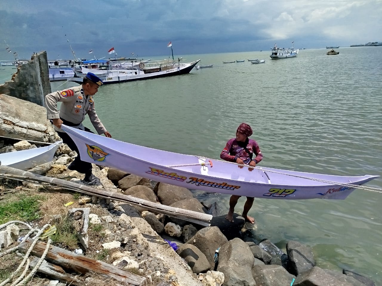 Dalam kegiatan itu, personel Satpolairud Polres Bone Aipda Moh. Amir membantu nelayan menurunkan perahu ke laut untuk digunakan dalam aktivitas penagkapan ikan sekaligus memberikan imbauan keselamatan saat beraktivitas di laut.
