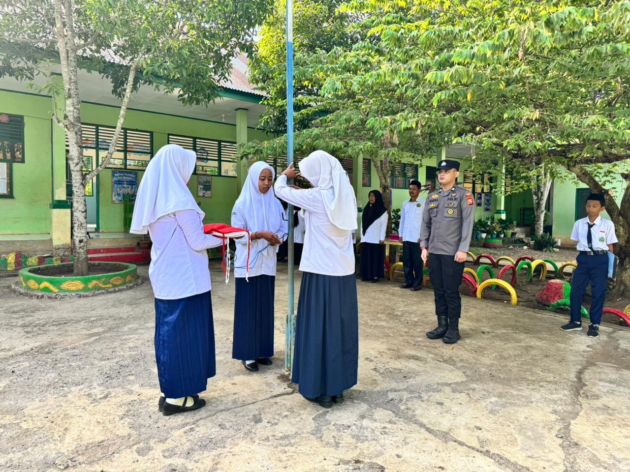“Sebagai pelajar, kalian adalah generasi penerus bangsa. Jadilah teladan dalam berperilaku, hormati guru dan orang tua, serta jauhi hal-hal negatif yang dapat merusak masa depan,” ujar Briptu Cakra Pradana di hadapan peserta upacara.