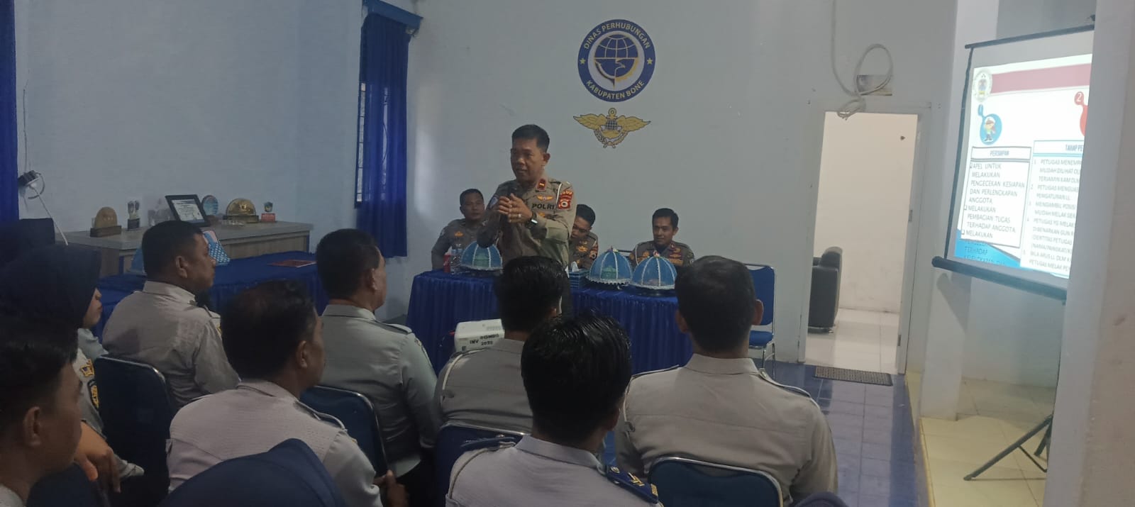 BONE – Sat Lantas Polres Bone melaksanakan giat Lintas Sektoral berupa sosialisasi dan penyuluhan tentang pengaturan Lalu Lintas kepada Personel Dishub Kabupaten Bone, Senin (3/11/2025).