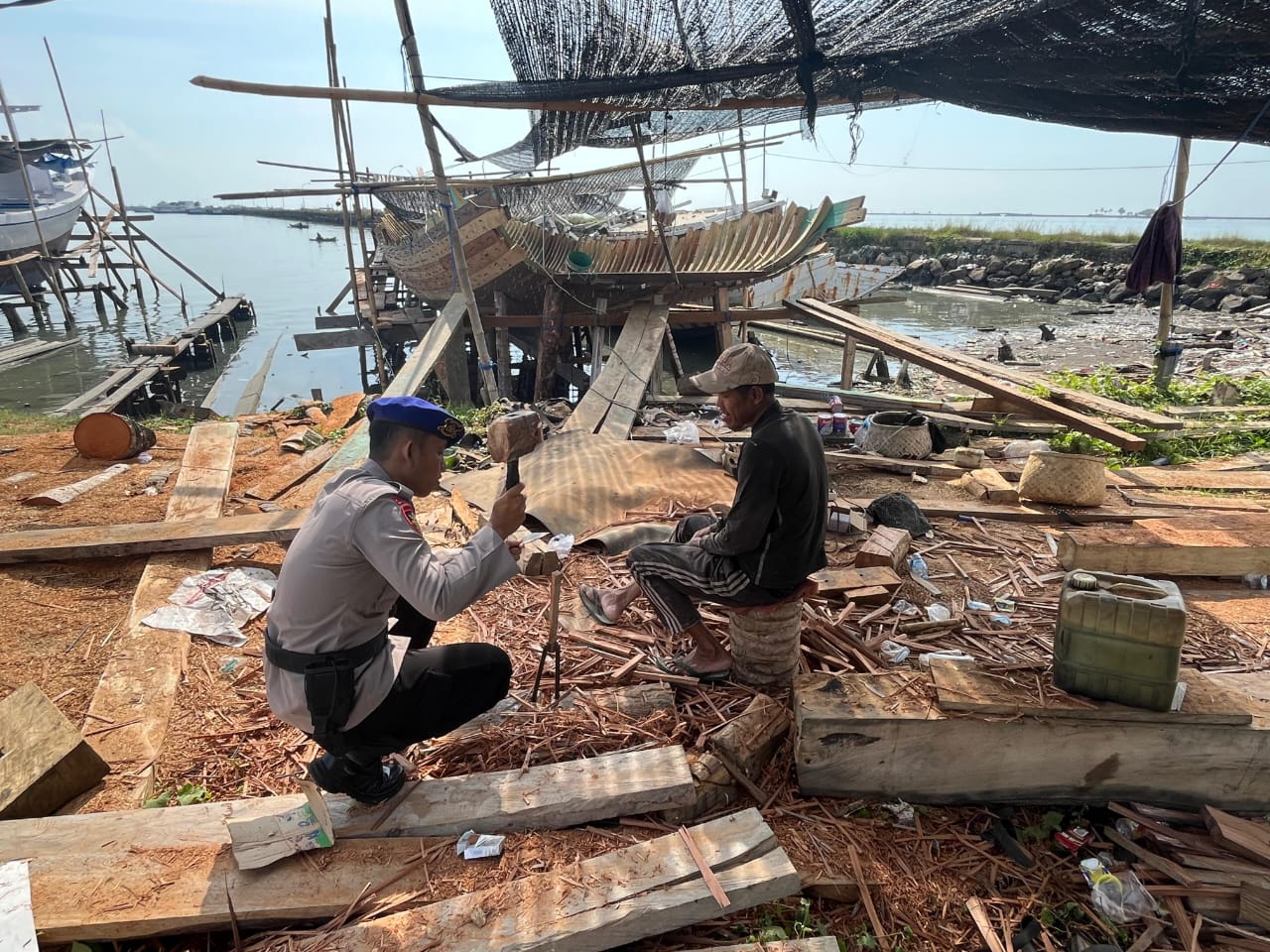 “Untuk meningkatkan sinergitas dan kemitraan dengan warga masyarakat yang berprofesi sebagai pembuat kapal nelayan sekaligus berdialog langsung dengan warga untuk mengetahui perkembangan situasi kamtibmas dilokasi tersebut,” Kata Kasat.