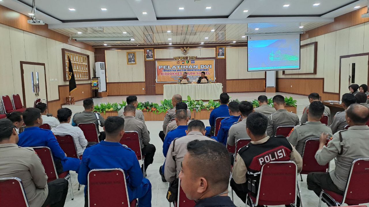 BONE – Dalam rangka meningkatkan kemampuan personel dalam menghadapi situasi bencana, Biddokkes Polda Sulsel menggelar Pelatihan Disaster Victim Identification (DVI) bagi personel Polres Bone dan instansi terkait. Kegiatan berlangsung di Aula Sarja Arya Racana Mapolres Bone, pada Rabu (5/11/2025).