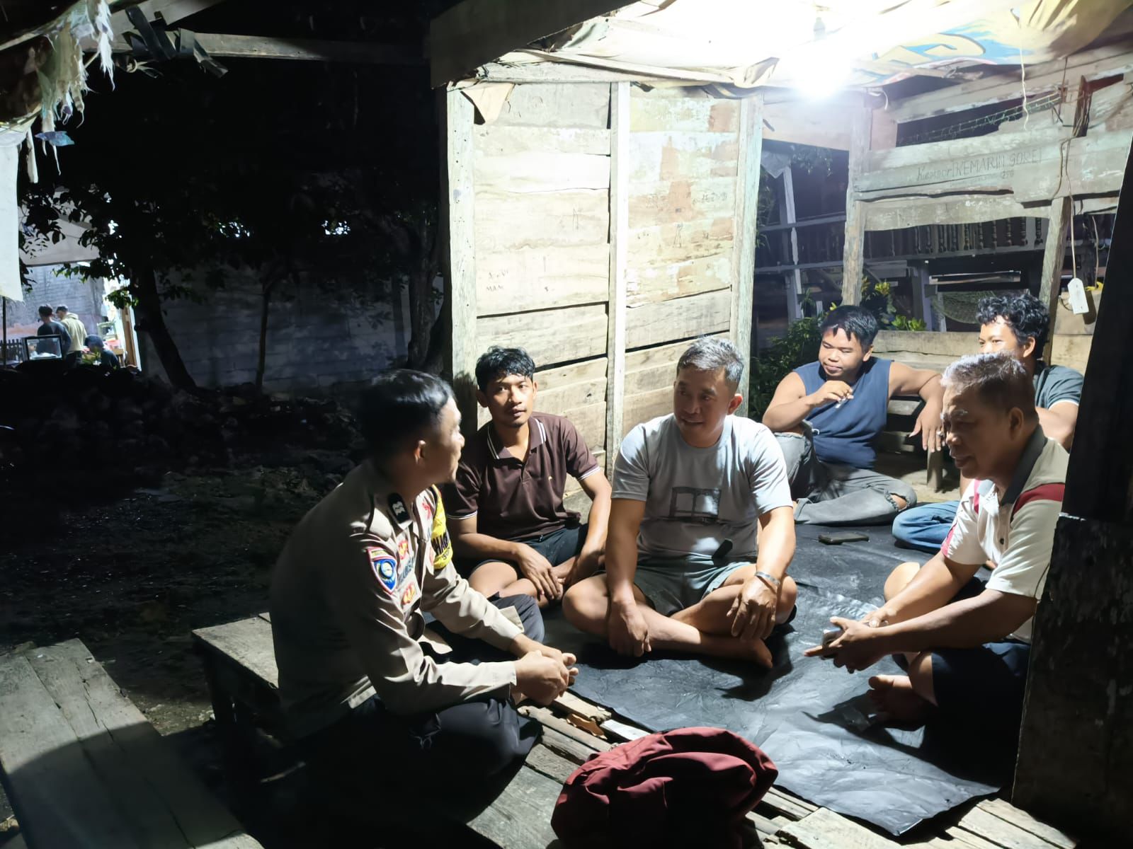 Dalam kunjungannya, Aiptu Muhammad Aras Patarai berdialog langsung dengan para anggota Satkamling dan warga sekitar, membahas situasi kamtibmas terkini serta langkah-langkah pencegahan gangguan keamanan.