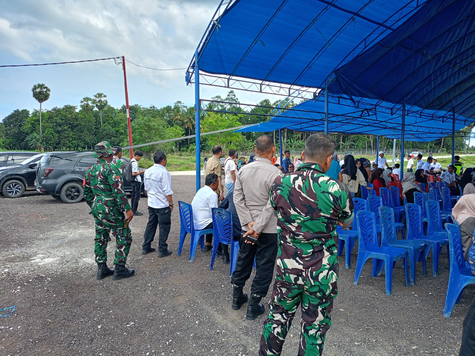 BONE – Personel Kepolisian Sektor Awangpone Polres Bone bersama personel Koramil Awangpone melaksanakan kegiatan pengamanan Konsultasi Publik terkait Rencana Pengadaan Tanah bagi Pembangunan Runway Bandara Arung Palakka Kabupaten Bone. Kegiatan ini berlangsung pada Senin, 01 Desember 2025 sekitar pukul 13.45 Wita, bertempat di Halaman Masjid Ibnu Firnas Bandar Udara Arung Palakka, Desa Mappalo Ulaweng, Kecamatan Awangpone. Pelaksanaan pengamanan dilakukan sebagai bentuk komitmen aparat TNI-Polri dalam menjaga stabilitas kamtibmas dan memastikan kegiatan berlangsung dengan aman, tertib, serta lancar.