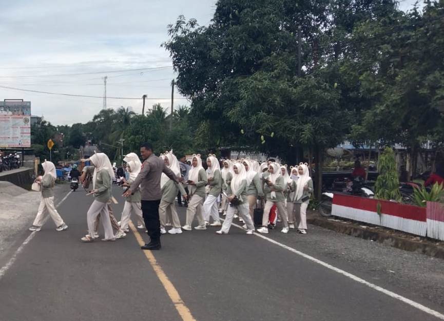 Bripka Idrus yang memimpin langsung kegiatan pengamanan ini. Ia hadir bersama personil lainnya menjaga dan mengamankan arus lalu lintas sepanjang kegiatan para pelajar ini berlangsung.