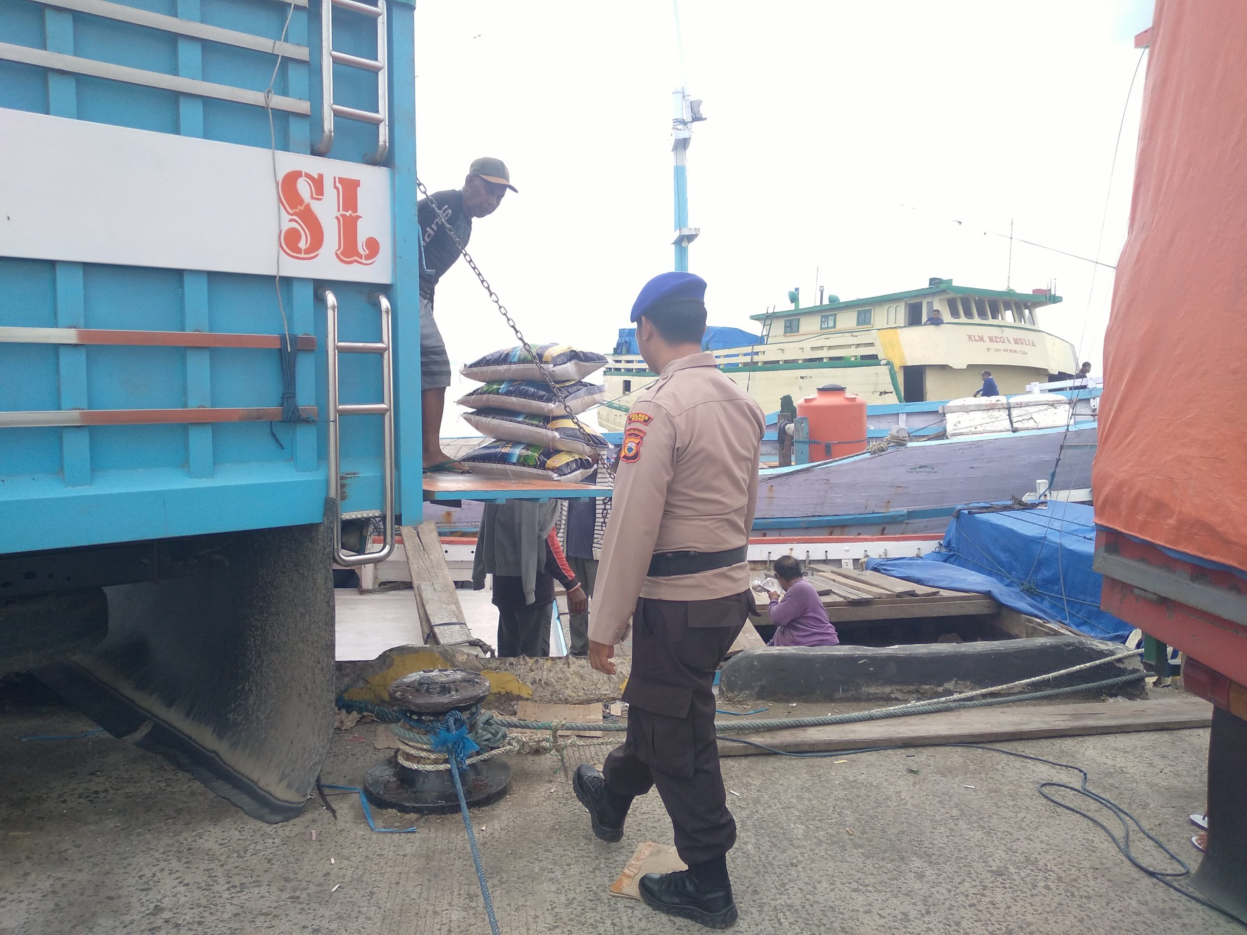BONE – Bajoe, Personil Satpolairud Polres Bone Kasunit Binmas Satpolairud Polres Bone Bripka Irda,SH bersama dengan Bripka Muhlis melakukan pemeriksaan ketat terhadap muatan kapal barang yang sedang melakukan aktivitas bongkar muat barang maupun kapal-kapal yang sandar di dermaga pelabuhan rakyat Bajoe, Minggu (22/12/2025) siang.