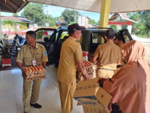 Bertempat di kantor kecamatan Patimpeng sebanyak 592 rak telur akan diberikan kepada 148 orang warga yang beresiko dan dinyatakan stunting.