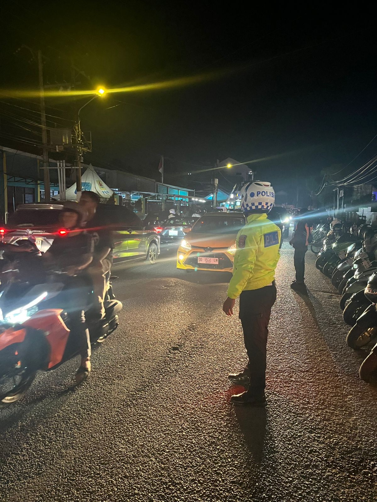 Personel tampak bersiaga mengatur kelancaran arus lalulintas demi menghindari penumpukan Kendaraan.