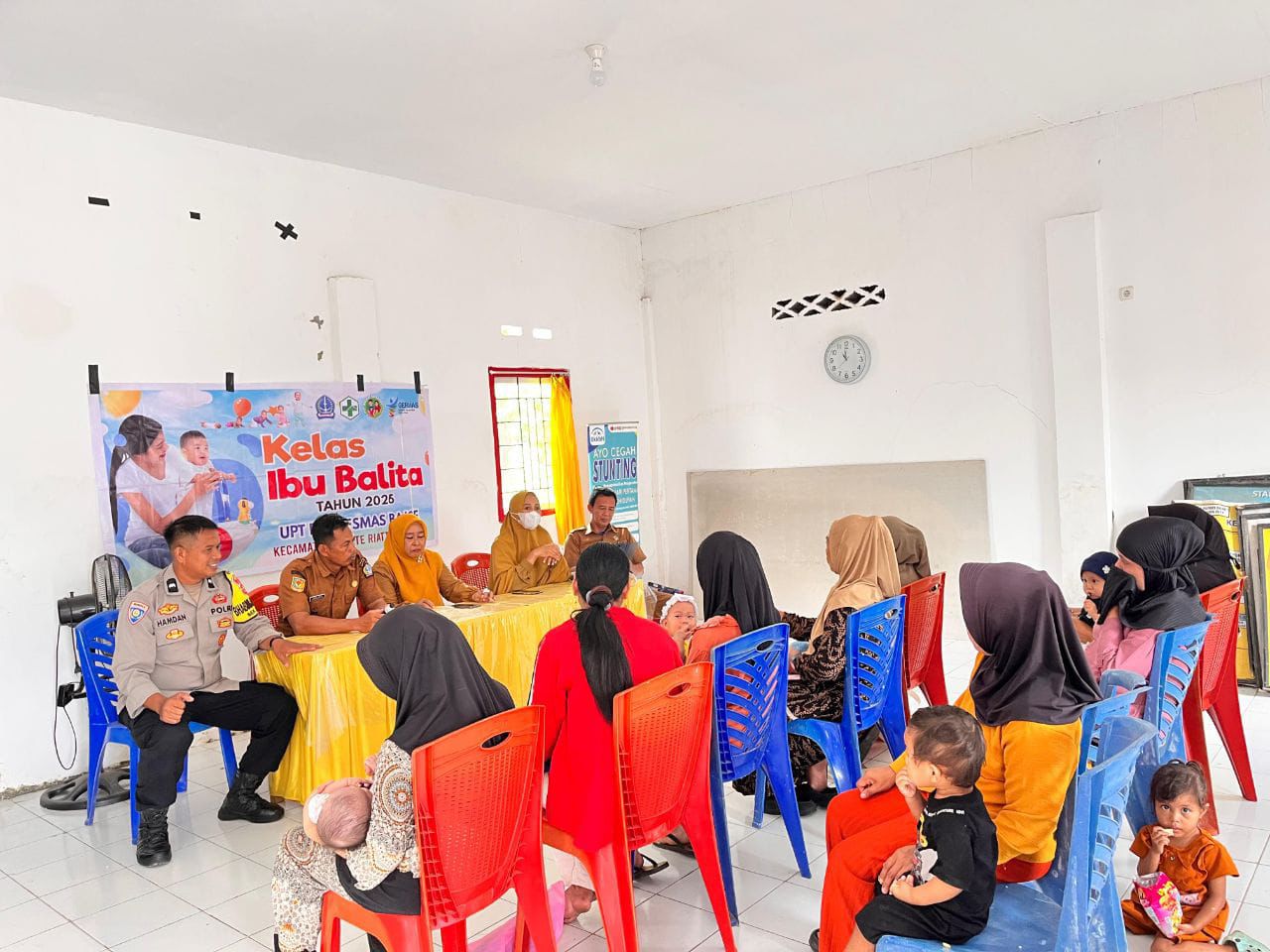 Dalam kegiatan tersebut, Bhabinkamtibmas Polsek Tanete Riattang, Aipda Hamdan, turut hadir dan mengikuti rangkaian kegiatan bersama para ibu balita, tenaga kesehatan, serta perangkat kelurahan. Kehadiran Bhabinkamtibmas menjadi bentuk dukungan Polri terhadap program kesehatan masyarakat, khususnya yang berkaitan dengan ibu dan anak.