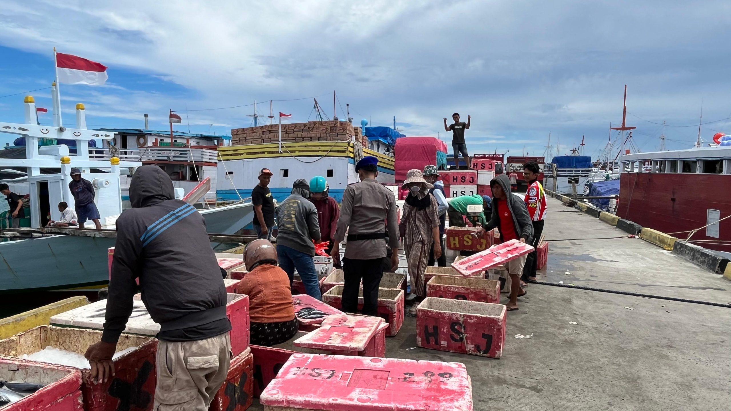 BONE – Bajoe. Untuk menciptakan rasa aman saat proses bongkar muat ikan sehabis melaut, personil piket Satpolairud Polres Bone Bripka Bambang Sufriadi, SE melakukan pengawasan diareal pangkalan pendaratan Ikan (PPI) Lonrae Kelurahan Lonrae Kecamatan Tanete Riattang Timur Kabupaten Bone. Senin (23/02/2026) siang.