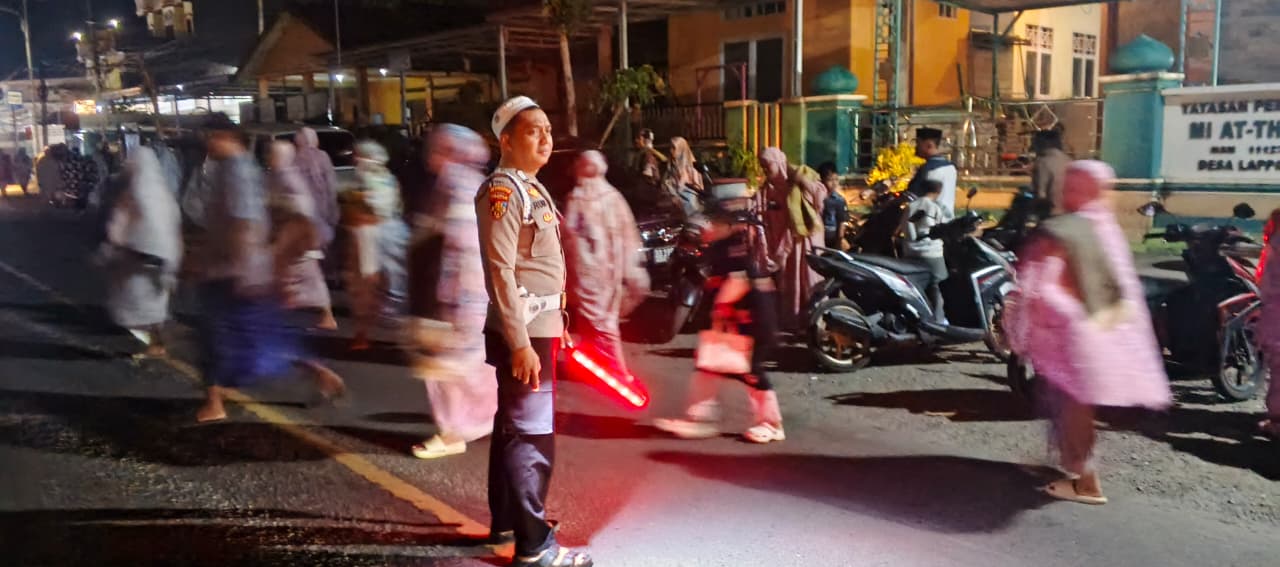 BONE – Awangpone, Pada hari Rabu, tanggal 11 Maret 2026 sekitar pukul 20.00 WITA, personel Polsek Awangpone melaksanakan pengamanan kegiatan sholat Isya dan sholat Tarawih berjamaah yang berlangsung di Masjid Daarul Muttakin, Desa Lappoase, Kecamatan Awangpone, Kabupaten Bone.