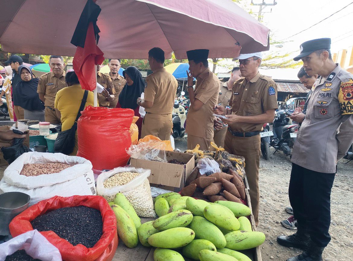 Kami hadir untuk mendampingi kegiatan pemantauan harga sekaligus memastikan lingkungan pasar aman dan nyaman bagi pedagang maupun pengunjung,” ujar Aiptu Baso Halim.