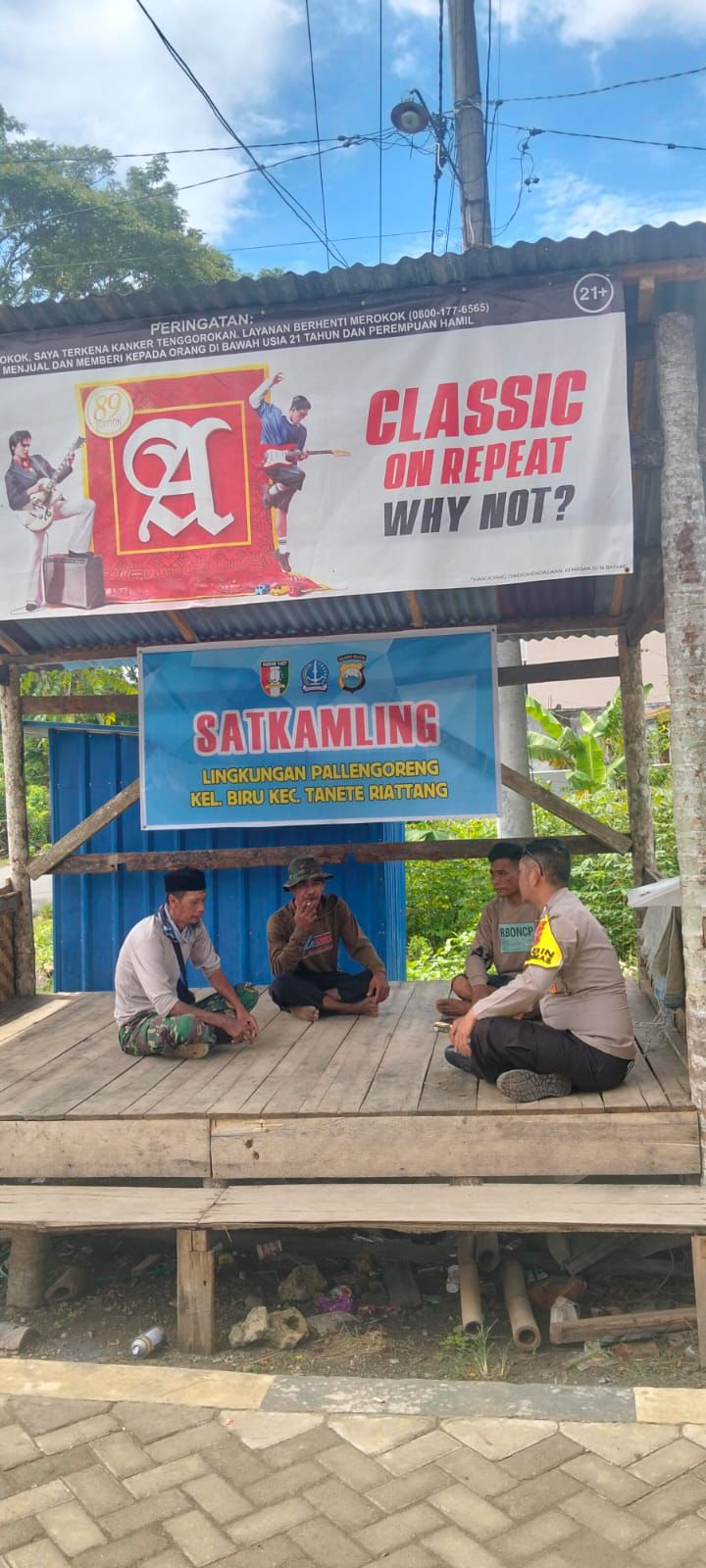 BONE – Manurunge, Bertempat di Pos Satkamling Lingkungan 2 Palengoreng, RT/RW 001/002, Kelurahan Biru, Kecamatan Tanete Riattang, Kabupaten Bone, Bhabinkamtibmas Kelurahan Biru, Bripka Sultan, melaksanakan kegiatan kunjungan Satkamling di wilayah binaannya.”Kamis (9/4/2026)