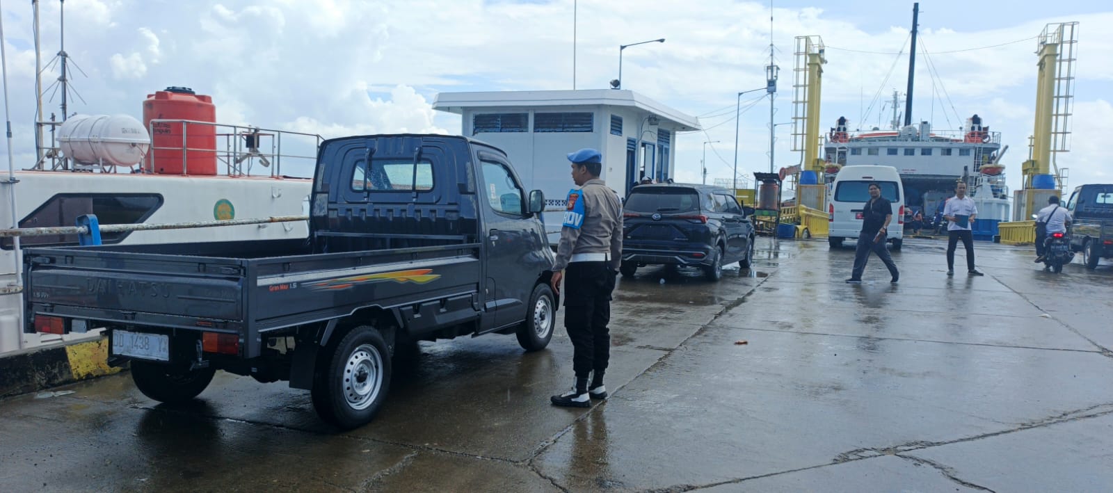 Personil Polsek Lakukan Pemeriksaan Kendaraan Sebelum Pemberangkatan Kapal